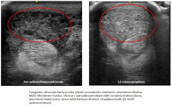 U koní jsme nejčastěji léčili přetržení a degeneraci šlach, případně artritidy. Příkladem může být sedmiletý holandský teplokrevník, u kterého došlo při krosové části mezinárodního závodu všestrannosti k přehřátí šlachy a její následné degeneraci a ztrátě funkce.