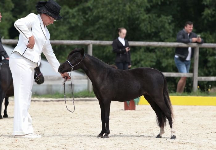 Miniaturní koně byli v chovatelských třídách posuzováni odděleně podle KVH v sekci A a B. Mezi hřebci sekce A byl nejúspěšnější francouzský odchov v majetku manželů Sovových – roční hřebeček Modello Shy Josie W Cesar de Paris, který letos bodoval už v červnu na Velké ceně Cavalletto.