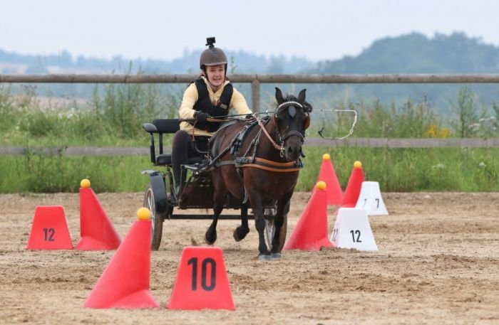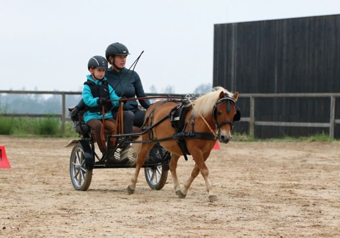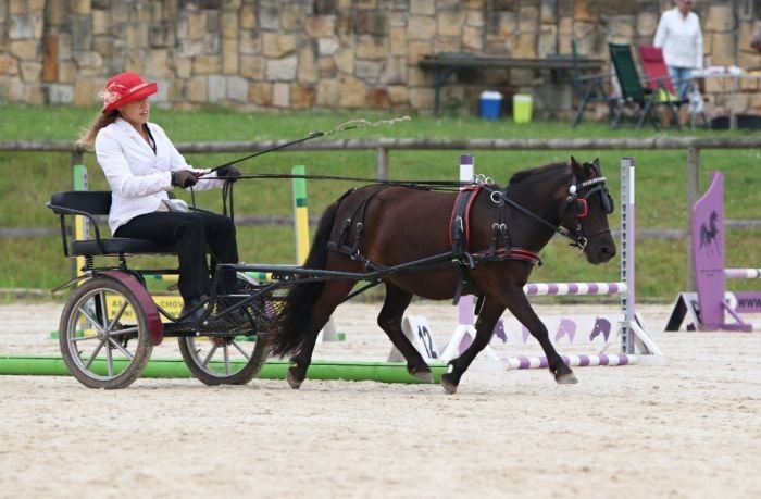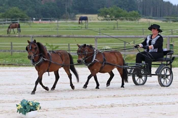 Malá plemena pony nebo koní vídáme nejčastěji v jednospřeží v lehkých jednonápravových sulkách. Vícespřeží malých koní vídáme na výstavách poměrně vzácně. Proto paní posuzovatelku a určitě i diváky potěšila drivingová třída, kde se miniaturní koně – plemenný hřebec Nirvana’s Breaking Thru a klisna Trix v.d. Schoolsteeg předvedli v tandemu pod vedením paní Evy Véghové (Stáj Cavalletto).