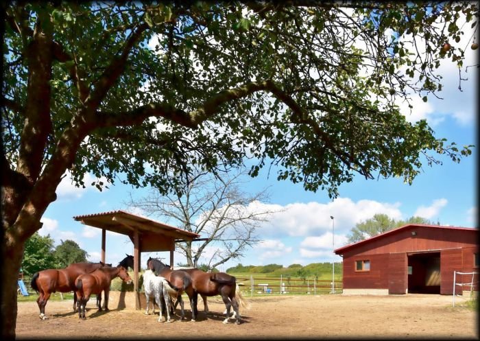 12. Máte nějaké osobní vychytávky (např. větráky v přístřešcích pro tropické dny, drbadla, hračky, pro koně brouzdaliště…), o které by ses podělila se čtenáři?V letním období se koně sami od sebe většinou stahují do velké stáje a do boxů. Je to hlavně kvůli hmyzu a slunci. Stáj i boxy jim poskytují příjemný stín a všechny stavby jsou situovány tak, aby se v létě nepřehřívaly a v zimě byly chráněné proti průvanu. Je toho docíleno vhodným umístěním skleněných či plastových prosvětlovacích výplní i celkovou dispozicí vzhledem ke světovým stranám. Velká stáj má 4 velká výklopná okna ve výšce 2 m, tak aby to bylo bezpečné pro koně a umožňovalo účinné větrání hlavně v letním období. Naše pastviny jsou z části sadem ovocných stromů, které slouží také jako drbátka a v neposlední řadě jako místa, kam se schovat před úporným sluncem. V parném létě koně s oblibou využívají přírodní brouzdaliště tvořené tůní v meliorační strouze. Do budoucna uvažujeme o vybudování paddock paradise s umělými brouzdališti a s oblázky pro kopyta. Hračky nemáme, myslím, že koně, kteří žijí přirozeně ve stádě, takové vymoženosti nepotřebují. Vyhrají si dostatečně mezi sebou.