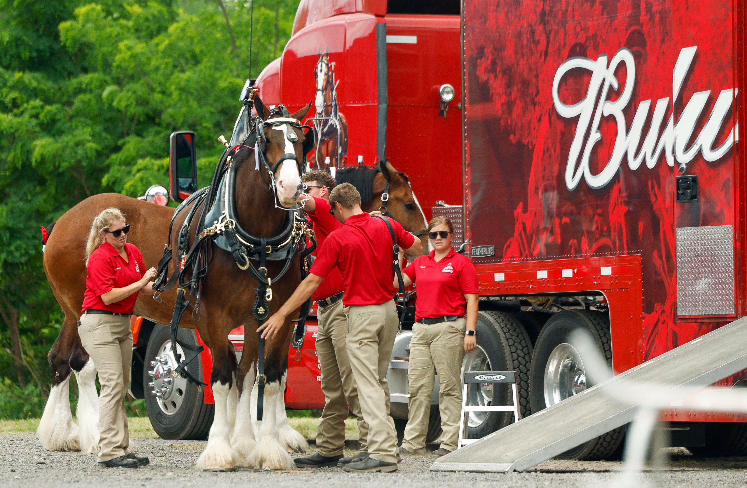 Provozování takovéto živé reklamy je tak trochu logistický oříšek. Pět kompletních týmů je prakticky deset měsíců v roce na cestách v kamionech se speciálním vybavením. V každém týmu cestuje dvanáct koní, aby bylo zajištěno jejich pravidelné střídání v zápřahu, a tím i dostatečný prostor k odpočinku. Tato spřežení absolvují každý rok stovky vystoupení, což klade obrovské nároky na jejich psychickou stabilitu. Přesto clydesdalové svou práci vždy vykonávají s jistotou a klidem „něžných obrů“, bez kterého by popularita Budweiseru nikdy nedosáhla takových rozměrů.