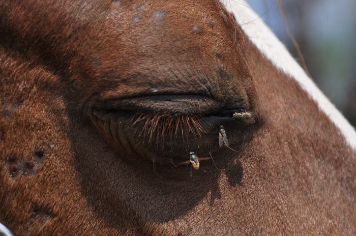 Dále se doporučuje přesunout koně na jinou pastvinu nebo je pást v době, kdy hmyz není aktivní (nejvíce aktivní je při západu a východu slunce). Důležité je odstraňování trusu a hnoje. Některé druhy hmyzu jsou parazité krav, a tak není vhodné koně a skot pást na společných pastvinách. Protože mnoho druhů se množí ve stojaté vodě, je dobré pokusit se pást koně ve větší vzdálenosti od ní. Je vhodné zabránit přístupu hmyzu do stáje a případně lze použít větráky (většina druhů špatně létá v proudu vzduchu). Koně je také možno chránit různými maskami a prodyšnými pokrývkami – komerčně jsou dostupné i produkty impregnované insekticidy/repelenty, které účinek znásobují. Mezi repelenty tradičně používané pro koně patří látky ze skupiny pyrethroidů dostupné v různých formách (spot-on, spreje atd.) a s různou frekvencí aplikace.