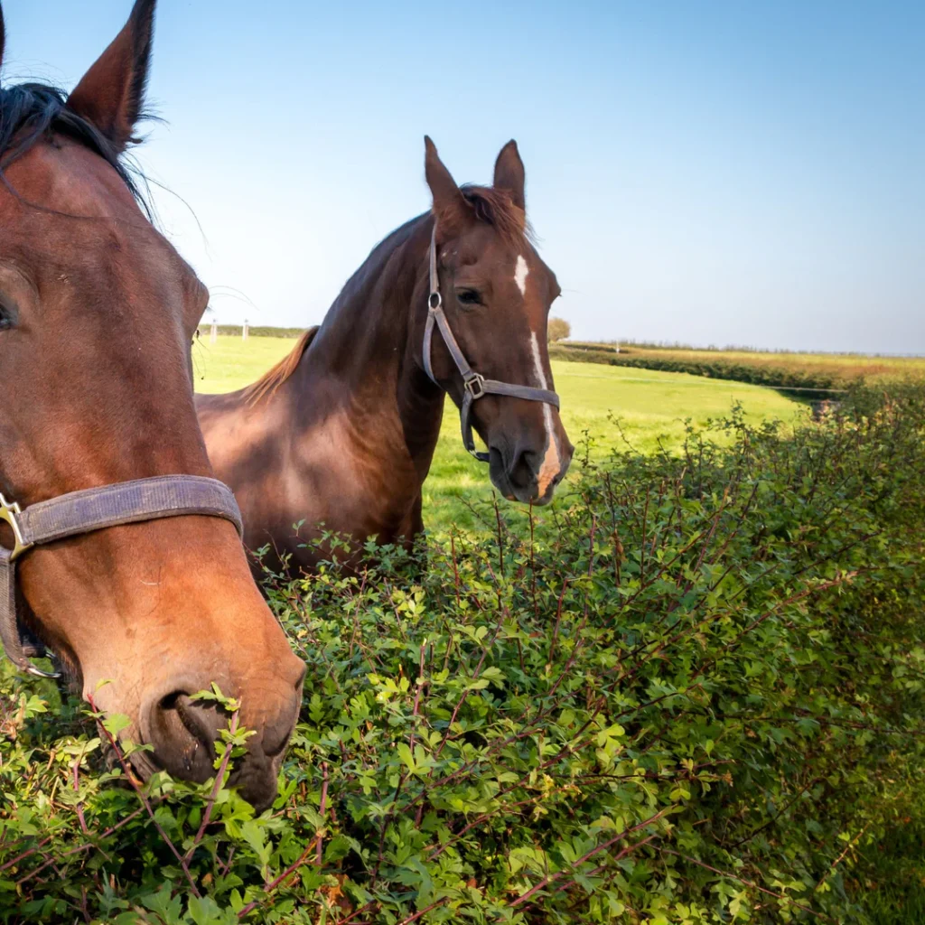 Hloh obecný (Crataegus): Netoxický, podporuje srdeční činnost. Koně rádi opatrně okusují lístky. Trny jsou pevné, nelámou se jim špičky jako u trnky, na větvích dobře drží. Přesto mohou způsobit škrábance nebo poranění očí, pokud je kůň do keře natlačen (např. při hře ve stádě). Proto se doporučuje sázet ho spíše za ohradu (jako druhou linii bariéry).