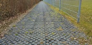 Například vlisová zatravňovací dlažba PERFO. Výhradní dovozce je firma Webimex. Na stránkách má uvedeno, že dlažbu lze instalovat na stávajících travnatých plochách i na hlínu, štěrk, písek. Dá se následně po pokládce prosypat štěrkem, pískem, zeminou nebo směsí. Je navržena tak, aby zabraňovala pronikání bahna. Speciální otvory mají účinně odvodňovat a nosnost se liší podle typu – například PERFO-EQ má být vhodná pro střední až těžké zatížení.