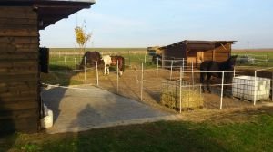 2. Zásyp povrchu štěrkemKomu nevadí na pozemku kamení, určitě ke koním alespoň v některých místech ploch různé frakce štěrku nebo třeba oblázků či jiného kamení již použil. Například do frekventovaných vstupů na pastviny, před přístřešky, na průhony a treky. Někteří jsou spokojení s kamenem i kolem krmelců. Osobně mám ráda místa natolik frekventovaná, jako je okolí krmišť a vyhledávané odpočinkové zóny (tedy místa s největší hustotou trusu) zpevněná takovým způsobem, aby byl úklid snadný – tedy bez "přesívání" bobků od kamení. Navíc mám ráda, pokud mi lopata snadno "jede" po povrchu, aniž by zachytávala o nerovnosti. Což v případě povrchu tvořeného ze sypaného kamení neplatí. Ale na druhou stranu je pravda, že lépe "chytat" o vystouplé kamínky, než dolovat kobyláky z bahna po kolena… 🙂 A jelikož již starý Xenofón radil, že pokud chceš posilnit kopyta koně, nech ho žít na takovém povrchu, po jakém se bude při putování pohybovat, je spousta majitelů ustájení pro kámen a štěrk v určitých místech výběhů všemi deseti.