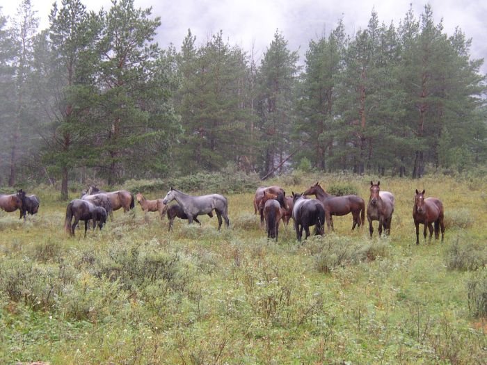Náš ruský průvodce Leoňa pochází z vesnice z kazašské strany Ruského Altaje. Je to skvělý raftař, domluví se s místním obyvatelstvem, policií i armádou. A jako každý Altajec je jezdec. Kůň zde stále představuje nejlepší, nejdostupnější a nejspolehlivější dopravní prostředek. Když vidí, jak koně stále okukuji, pouštíme se do řeči o altajských koních, ty nás budou provázet po celou plavbu. Pro nás Evropany je způsob chovu altajských koní těžko představitelný. Koně jsou chováni v drsných klimatických podmínkách polodivokým způsobem, jsou celoročně venku na odlehlých pastvinách v doslova nedostupných údolích. Bez jakéhokoliv ohrazení či zabezpečení. Stádo tvoří vůdčí hřebec, klisny a hříbata. Stádo nechávají majitelé v údolích třeba i několik let. Když se jim zachce, odvedou mladého hřebce od stáda a stádo nechají zase volně žít. Prostě divocí koně! Leoňa si je téměř jistý, že v sevřeném údolí Argutu koně nebudou. Nikdy údolím neproplul, ale podle map tam nejsou stepi, tudíž tam koně nemají co žrát. Moc chci vidět divoké koně.