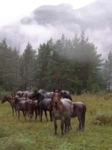 Míříme do hor a cestou širokými údolími míjíme stáda koní, krav a ovcí. Jezdců na koních i soumarů nesoucích náklad přibývá, jak ubývá asfaltu, skoro bych řekla, že je tady přímá úměra. Koně jsou pořád na pohled stejní, malého vzrůstu, silní, houževnatí s hrubou hlavou na krátkém krku, nejčastěji ryzáci, hnědáci a tmaví hnědáci s minimem odznaků.