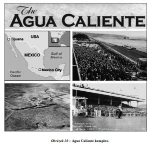 „Tichuana, schoulená mezi kopci, za kterými se na obzoru tyčí vysoké horské hvozdy, byla městem, kam mohl přijet každý – slušný člověk i darebák. Ve 30. letech dvacátého století kvůli prohibici v Americe proudily do města davy lidí, aby se tu oddávaly bezuzdným pitkám a hazardu. V Agua Caliente sice existoval jakýsi spolek nazývaný Jockey Club, ale koňské závody nebyly zdaleka jedinou atrakcí v komplexu. Hazard zde bujel všemi směry a s ním šla ruku v ruce i špatnost a lidská závist. Hráči, podvodníci a členové mafiánských gangů byli v Agua Caliente jako ryby ve vodě. Jejich hlavním cílem bylo snadno a rychle vydělat velké peníze. K dispozici měli sál s kasinem, kde se hrál poker, a několik dalších salónů s ruletou. Zpestřením všeho byly sázky na koňské dostihy. Tichuana byla zkrátka rájem pro všechny milovníky pravého hazardu.“[3]