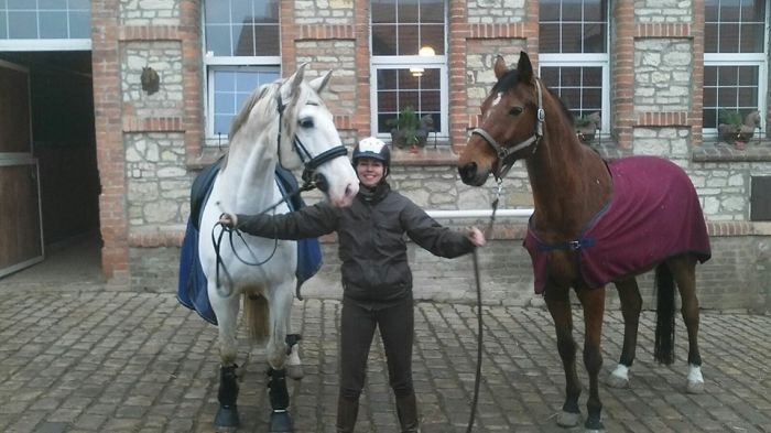 Chtěla jsem s koňmi skončit, ale nevydržela jsem to a nakonec jsem ke koním přitáhla i svého nového přítele. To on přišel s tím, že si pořídíme vlastního koně, a tak jsme koupili Cimborku, že on s ním bude skákat a já budu jezdit drezuru. Takže teprve v tomto okamžiku se dá říct, že jsem se o nějakou drezuru vůbec začala pokoušet. S Cimborkou jsem si nakonec udělala i licenci a příteli nezbylo, než si pořídit vlastního koně:)