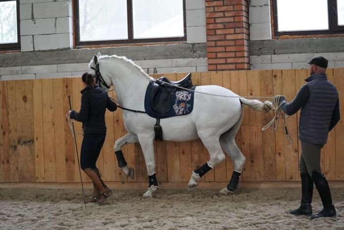 Gonçala jsem také poznala na zmíněných závodech v Polsku a měla jsem tam s ním i trénink, který se mi velmi líbil. Když se loni začala situace s covidem zhoršovat, tak jsem věděla, že toho musím využít, dokud to jde, a někam vyrazit. A on se akorát natrvalo usadil v Polsku a hledal working studenta na měsíc říjen, tak jsem neváhala ani minutu. Nakonec jsem zůstala měsíce dva. Další skvělá zkušenost, úplně jiná než ta francouzská. Tady jsem dělala klasickou ošetřovatelskou práci, připravovala jsem koně na práci, lonžovala a čistila výstroj, pomáhala s ježděním. Každý den jsem měla trénink se svým koněm, někdy i s jiným. Gonçalo je skvělý trenér, který několik let působil v portugalské jezdecké škole a nyní připravuje koně do sportu. Přesně viděl, kde máme s Mílou mezery v základech a pracoval se mnou na tom, abychom je opravili. Bylo to náročné, ale rozhodně se to vyplatilo. Jsem si jistá, že bez této dvouměsíční intenzivní práce bychom dnes sérii patnácti jedniček nenaskákali. Pokud někomu zmiňované první soustředění uteklo, jste zváni na jeho pokračování, které se bude konat v termínu 16.-17. října opět v areálu Villa Gineta.