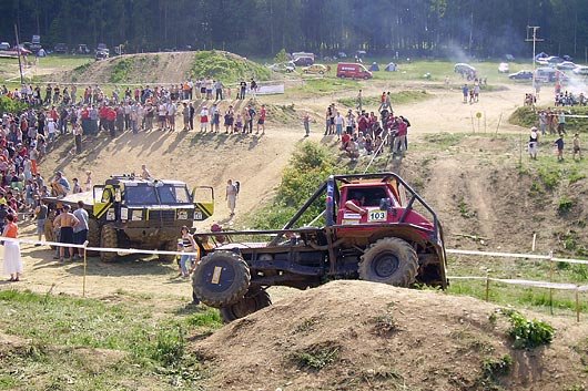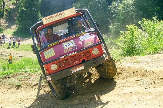 Během dne dojde k porovnání obratnosti tažného koně v terénu se speciálním tahačem do terénu – unimogem ze "stáje" příznivce Vojty.