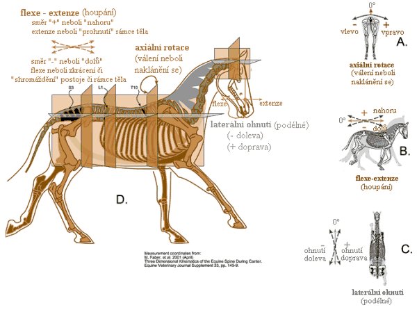 Faber, et al. 2001. Three-dimensional kinematics of the equine spine during canter (on a treadmill). Equine Veterinary Journal Supplement 33: 145-149 (PŘÍMÉ měření na obratlích holandských koní ve cvalu.) (pozn. překl.: Základní tří-dimenzní kinematika páteře koní ve cvalu na zátěžovém pásu)