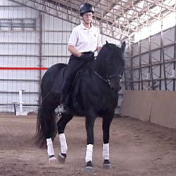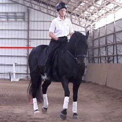 – kůň musí být neustále rovnoměrně "ohnutý" (laterální sestavení páteře) od týlu po ocas, k čemuž se ještě přičítá pravidelné houpání trupu do stran ve všech chodech;
