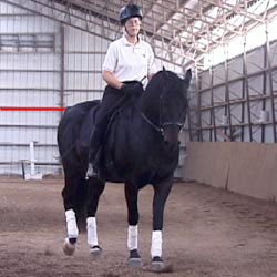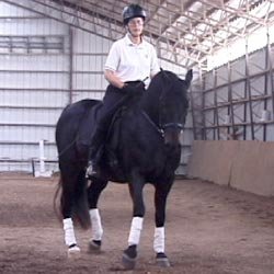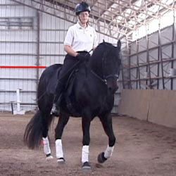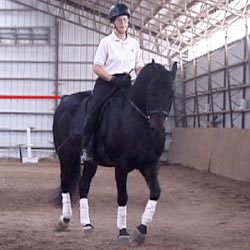 Tento videozáznam (a jeho velká verze 897 K) ukazuje střídavé (ze strany na stranu) pohyby hřbetu koně zezadu: Max pracuje na čtverci a provádí dovnitř záď na čtyřech stopách (na levou ruku).