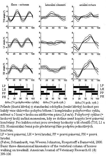 Faber, Schamhardt, van Weeren Johnston, Roepstorff & Barneveld. 2000. Basic three-dimensional kinematics of the vertebral column of horses walking on a treadmill. American Journal of Veterinary Research 61(4): 399-406 (PŘÍMÉ měření na obratlích holandských koní v kroku.) (pozn. překl.: Základní tří-dimenzní kinematika páteře koní v kroku na zátěžovém pásu)