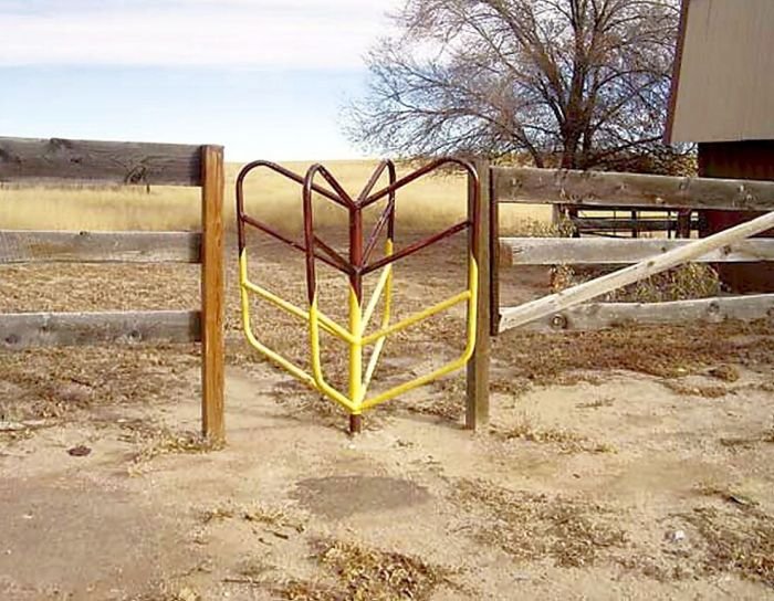 Volně neprůjezdné zavírací brány Někdo volí tradičně jednoduchý farmářský styl, ale potkat se dají i velmi alternativní brány. Každopádně vždy myslete na určení, kterému musí brána posloužit. Je-li zamýšlena na průjezd techniky, bereme při stavbě v úvahu dostatečné rozměry, a to nejen pro šířku a výšku strojů vlastních, ale i půjčených, které si v rámci služeb na ranč pozveme. Vstupy a brány určené pouze pro osoby a zvířata, ne větší techniku, se spokojí s podstatně menšími průchozími rozměry. Na nich se můžeme doslova esteticky vyřádit!