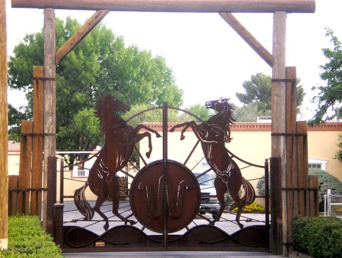 U speciálních bran, obzvláště na zakázku vyráběných a podepsaných uměleckými galeriemi, do puntíku dodržujeme „návod k použití“. Samozřejmě, že kráse těchto koňobran nešlo odolat, takže tento článek praská ve švech, co se fotografií přímo v textu týče (navíc jsem dost pracně stopovala konkrétní galerie) – tak využijte obrázků a zvažte, zda některé skvosty, zdobící sídla movitějších koňáků v cizině, neinspirují i vás. Například v Steel Horse Studio začíná cena vjezdových rančerských bran na 1 800 $ – ovšem skvostné kousky mají samozřejmě hodnotu podstatně vyšší…