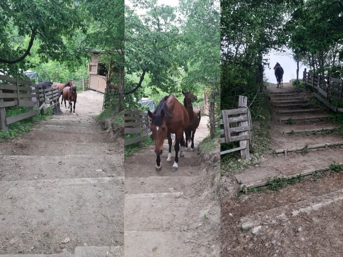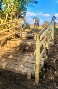 „Schody naši koně mají cca 7 let… dělali jsme je rok poté, co jsme si přivezli koně domů na velmi kopcovitý pozemek. První rok bez schodů byl tento kopec nepříjemný až nebezpečný, doslova skluzavka. Pro lidi i pro koně. Takže zkusit vybudovat schody byla naprostá nutnost.