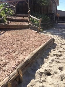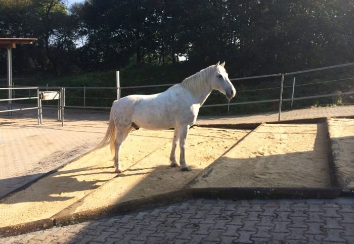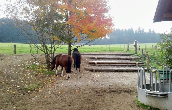 – pokud použijete kámen nebo beton, upravte povrch protiskluzovým materiálem a udělejte jednotlivé stupně dostatečně široké, aby vám na nich vydržela materiálu opravdu dostatečná vrstva. U písku počítejte s neustálým odnosem na kopytech, „nespeče“ se. Perk a kamenný prach při dostatečné vrstvě, prolévání vodou a udusávání vytvoří podstatně stabilnější podloží.