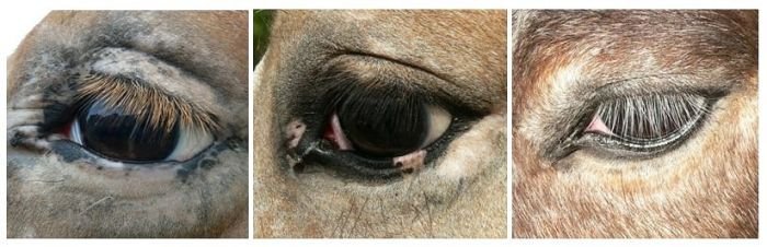 Bílá bělima (kromě poslední fotografie také skvrnitá kůže kolem oka)