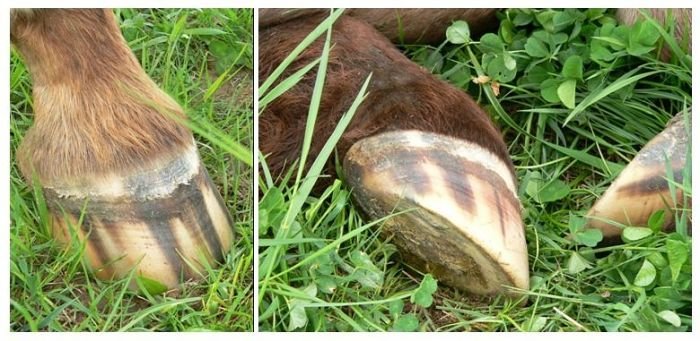 Zajímavostí je zbarvení kopyt v závislosti na genotypu. Zatímco kopyta heterozygotních koní budou výrazně pruhovaná (u končetin bez odznaků); kopyta homozygotů budou převážně světlá (s nepatrným pruhováním). V případě bílých odznaků na končetinách budou kopyta světlá bez ohledu na genotyp.