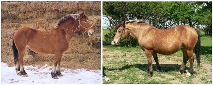 Že podkladová srst nemusí mít jen základní barvu, ale rovněž zesvětlenou, dokládají následující fotografie bay dun leopard (možná přesněji "near" leopard – vzhledem k absenci skvrn na krku).