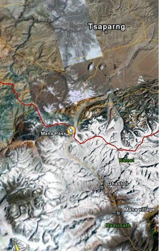 Průsmyk Mana, kterým Daniel Robinson se svými dvěma koňmi prošel, leží mezi převážně neobydlenými pláněmi Tibetu a horskými oblastmi severní Indie.