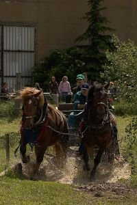 Do programu byl také zařazen dvojboj (ovladatelnost a formanka) pro začínající kočí, kterého se kromě našich absolventek a studentky s pony spřežením zapojil také patnáctiletý Martin Prokš se spřežením „velkých koní" svého otce (a velkou kládou). Ten také celou soutěž nakonec vyhrál, přesto je nutno naše děvčata pochválit za velmi pěkné výkony.