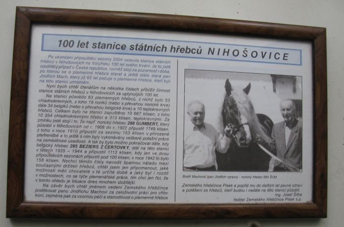 Takže trochu odbočím – bratři Machové společně pečovali o hřebce na stanici v Nihošovicích – a protože v jejich dvoře byla stanice přes sto let, dovolím si připojit text Ing. Šilhy, a fotky od Martiny Kůstkové (ta našla fotku ještě na negativu, takže je to již focené dávno).