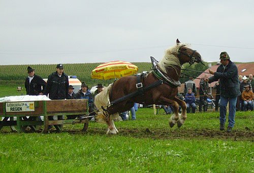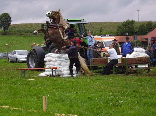 Některé výkony domácích účastníků nás přinejmenším překvapily. Dalo by se říci – jiný kraj, jiný mrav. Většina koní bohužel působila dojmem, že jsou využíváni pouze k tomuto druhu „sportu“, a to se již silně podepisuje na jejich psychice. Systém pravidel této soutěže dovoluje kočím sáhnout skutečně až na dno sil jejich koní. Většinou byli koně v této soutěži čtyřletí, byl tu však i tříletý účastník který nakonec utáhl 1720 kg. Nejstarší kůň byl osmiletý. Z toho lze usuzovat, že tento způsob jednostranného využití chladnokrevníků není tím zcela správným směrem, kam by se měl chov chladnokrevných koní ubírat. Dle našich pravidel se soutěží v těžkém tahu může účastnit kůň minimálně pětiletý. Tím je respektována tělesná dospělost chladnokrevných koní a zamezuje se trvalému poškození jak fyzického tak psychického zdraví koně. Na soutěžích v těžkém tahu u nás můžeme vidět koně starší 15 let ve skvělé kondici.