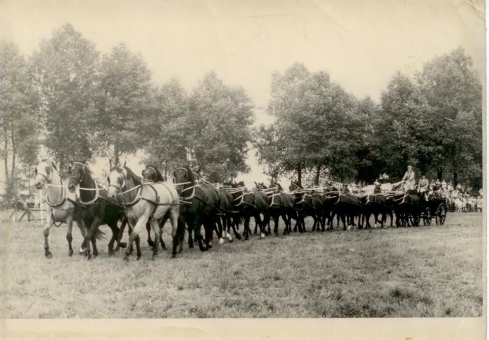 A také musím zmínit nezapomenutelný náš a možná i světový rekord ve vícespřežích – nejdříve sedmnáctispřeží a později jedenadvacetispřeží převážně vraníků a černých hnědáků s bílými opratěmi vedených Josefem Dymešem, pozdějším mistrem sportu a v 70. letech mým tehdejším sportovním rivalem v soutěžích dvojspřeží. Ještě doplním, že v tomto 7. pádu vždy p. Kubišta říkal „Dymšem“.