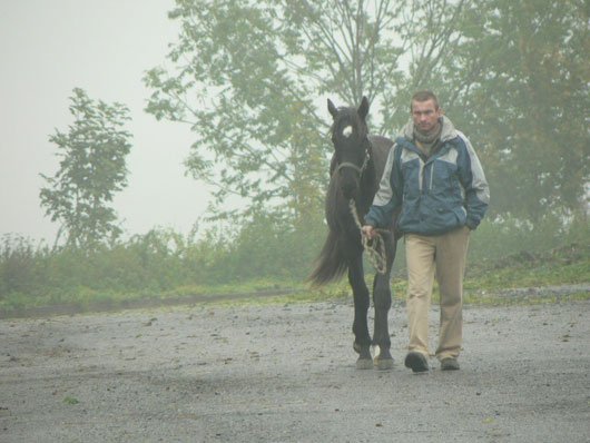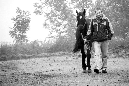 Původní snímek. Zašedlý, člověk a kůň se ztrácí, v obraze není nic ostrého ani vypíchnutého. Přesto pro vnímavého čtenáře má v sobě sílu okamžiku a naštěstí i schované barvy :o)
