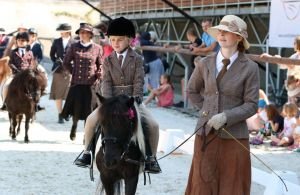 Prostorné venkovní kolbiště bylo rozděleno do dvou částí, ve kterých probíhal program současně. Před hlavní tribunou byl pro účastníky SVT připraven výstavní kruh, ve kterém se nám během dne představily čtyři skupiny Mladých vystavovatelů. V kategorii dětí do 6 let věku jsme viděli velmi pěkné výkony zejména u prvních třech umístěných. Rozdíly ve vystavovatelských dovednostech mezi prvními třemi byly malé a o konečném pořadí rozhodlo nakonec to, do jaké míry byli jednotliví vystavovatelé schopni udržet své poníky pozorné v průběhu celé výstavní třídy. Vítězkou se stala pětiletá Martina Kolaříková s WMP klisnou Sahara (Stáj Naes, Salazarův dvůr Telce). Druhé místo obsadila o rok starší Sandra Švarcová s klisnou bez plemenné příslušnosti Will (FARMA CHMEL) a třetí místo po úspěchu na dubnovém Prague Pony Cupu obhájila Nikol Suchoparová s klisnou zapsanou v rejstříku hřebců, valachů a klisen pod českou plemennou knihou pro miniaturní koně – Charlotte (JŠ Radošovice).