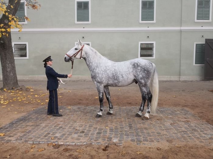 Po ukázce na ruce, na lonži a především v zápřeži byl pro prestižní, nicméně velmi náročnou službu vybrán pětiletý hřebec Generalissimus Caballeta XLVIII – 9 (O: Gss Ecraseé XLVIII, M: 334 Caballeta po G Aversa XLIX). Ten byl pro tyto účely dlouhodobě připravován Jiřím Nesvačilem jun.