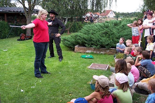 Další osůbky pomáhaly, kde se dalo a především děti měly nejvíce péče. Pro diváky bylo celý den otevřeno občerstvení s příjemnou obsluhou. Dítka se po vystoupení mohla povozit na koni a v soutěži skákání v pytli vyhrát i zajímavé ceny. Také tombola byla bohatá. Všem zúčastněným děkujeme a doufáme, že to byl i pro ně pěkný závěr prázdnin. Věříme, že nás při příštím dni otevřených vrat opět navštíví a podpoří tím záchranu týraných koní a naši práci.