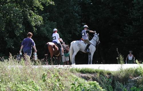 V takovém případě se potřebuješ nutně napít (slazená, nebo obyčejná voda stačí, v každém případě to musí být ta, kterou ještě nestihli připravit). Pokud blazeovaně stojí u auta, očividně dobře připravení, neobtěžuj se pitím. Náleduj ostatní koně ještě než na tebe stačí vychrstnout další vodu.