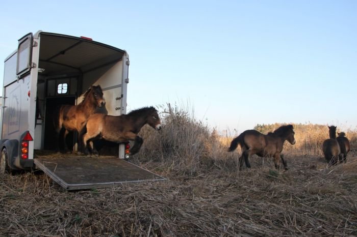 Na Baroch přijelo ve dvou transportech celkem osm koní z rezervace v bývalém vojenském prostoru Milovice. „Zvířata zvládla cestu dobře a začala se hned seznamovat s novým prostředím. Pustila se do spásání rákosu, který ze savanovité krajiny u Milovic neznají,“ doplnil Dalibor Dostál.
