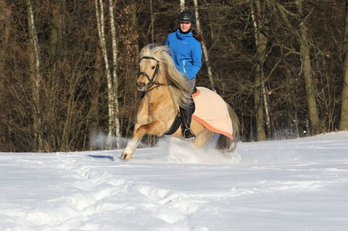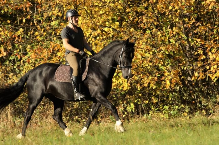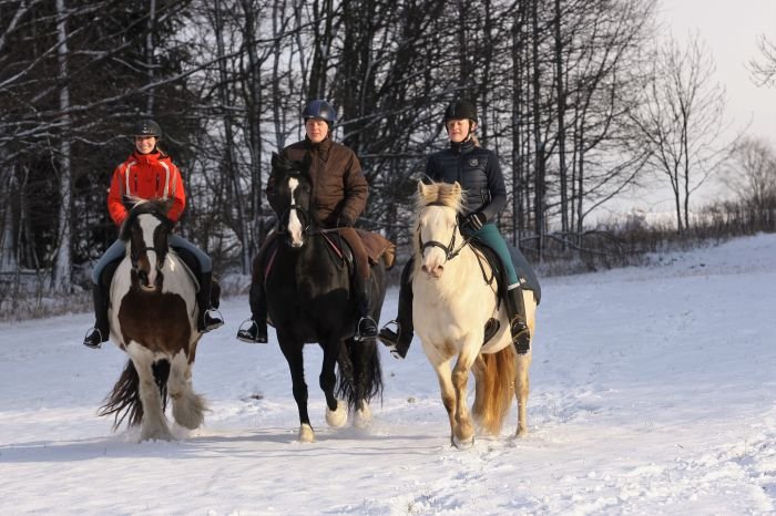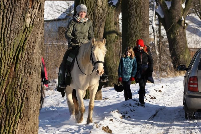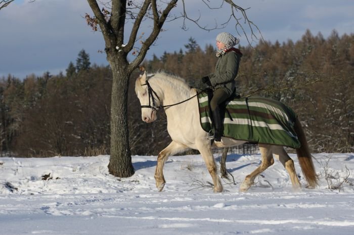 Pokud máme možnost práci na jízdárně kombinovat s prací v terénu, obzvláště pak je-li k dispozici terén kopcovitý, máme optimální tréninkové podmínky. Jízda členitým terénem nejen že zlepšuje horní linii, formuje svalovou soustavu a je výborným pomocníkem v rozvoji rovnováhy, koordinace a vytrvalosti, ale skvěle posílí i náš vztah s koněm. Když v terénu strávíme dostatek času, bude náš kůň nejen fyzicky, ale i psychicky odolnější. Terén je totiž plný neznámých nebo neočekávaných podnětů. Setkáváme se se zvěří, s domácími a hospodářskými zvířaty, s cyklisty i motorovými vozidly, umělými i přírodními překážkami. Vyhnout se obvykle nelze ani všelikým děsivým prvkům civilizačním – kombajnům, traktorům, zaplachtovaným stohům… Díky pravidelnému a pozitivně vedenému výcviku jsou ale dříve nebo později „oči navrch hlavy“ minulostí a kůň se stane sebevědomějším a tak i lepším partnerem, což samozřejmě ve výsledku oceníme i při práci na jízdárně. Kůň, který má možnost si „odpočinout“ v terénu, je vnímavější a citlivější k našim pobídkám a méně ho unavují stereotypy jízdárenské práce.
