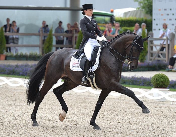 Vidět Donnerhalla na obdélníku bylo něco úžasného. Impozantní silný velký hřebec, ale překvapivě dobře jezditelný pro paní Rehbeinovou, ačkoliv je malá a drobná.