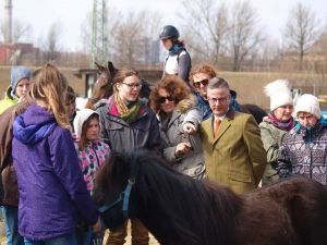 Dále probíhala praktická část na třech shetlandech, z toho jednoho plemenného hřebce. Celá tato část byla velice diskutována až do nejmenších detailů. Nigel opět hovořil o svých zkušenostech, které prakticky předváděl na předvedených ponících. I přes to, že poníci měli ještě zimní srst a nebyly ve výstavní kondici, předvedli se v plném nasazení.