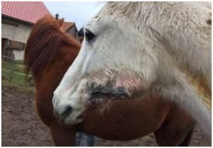 Letošní silvestr si vyžádal několik veterinárních zásahů u zraněných koní, také několik příjmů na klinikách v důsledku kolik, způsobených s velkou pravděpodobností dlouhým stresem v lokalitách, kde to bouchá, syčí a blýská dlouho před půlnocí i po ní. Bohužel se mi nepovedlo zastihnout žádného konkrétního majitele s prosbou o fotodokumentaci a rozhovor. Ale ochotně souhlasila Michaela Litovová a dala mi souhlas zveřejnit jejich tržnou ránu ze Silvestra loňského: