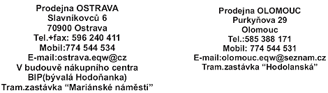 Prodejny, které můžete najít ve městech Ostrava a Olomouc pro Vás nabízejí a i nadále chystají mnoho zajímavých překvapení, slevových akcí, věrnostních programů a mnoho dalšího. Stačí se jen zajít podívat do těchto prodejen a informovat se u personálu, který Vám bude velmi ochotně nápomocen.