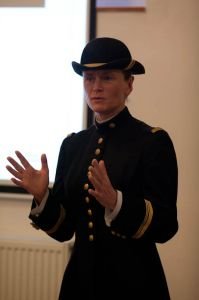 Lekce vedla paní Nadèje Bourdon, mistryně a profesorka jezdectví, která v roce 2002 obdržela tradiční symbol členství v elitní jezdecké skupině Cadre Noir v Saumuru, černý bičík se třemi zlatými kroužky.