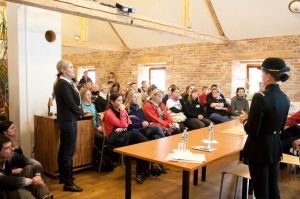 Po víkendovém soustředění proběhla v pondělí ještě přednáška v kině Francouzského institutu v Praze. Sešlo se mnoho zájemců a v publiku nechyběla ani známá jména. Vedle Nadèje Bourdon, která se soustředila spíše na praxi, přednášela také Sophie Biau z Národní jezdecké školy v Saumuru. Mezi diváky byl i pan Robert d´Artois, ředitel Národní jezdecké školy a zástupce ředitele Francouzského institutu pro koně a jezdectví.