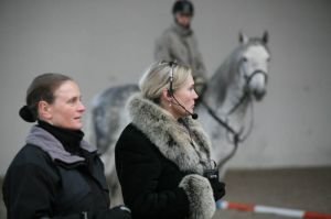 Měla jsem pocit že se opravdu snaží dělat to, co jsem po nich chtěla. Výsledek byl více či méně zřetelný, z toho důvodu, že jsme pracovali v podstatě na základech. Žádala jsem po nich, aby nějakým způsobem změnili své zvyklosti a to je to úplně nejsložitější, takže proto byl výsledek někdy zřetelný, někdy ne tak jasný. Co naopak bylo velice zřetelné, byla vůle jezdců vyhovět mi a dělat to, co po nich zrovna žádám. Někdy je ale potřeba zasáhnout ve velmi přesném okamžiku, aby v tom okamžiku jezdec učinil, co chci, a v tom nám překáží aspekt překladu, což nám přeci jen ztěžuje práci. Co se týče úrovně jezdců, byli zde na svém místě, bylo vidět že znají dost věcí, ale viděla jsem tam, že se potřebují vrátit zpět k základům. Ale to je situace stejná jako ve Francii.
