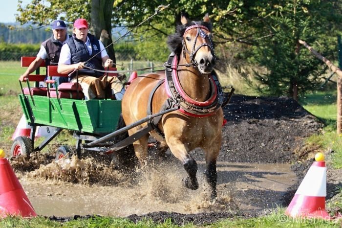 Začínalo se již klasicky vozatajskou jízdou. Zde se nejlépe dařilo Patrikovi Játymu s Litvorem a Mačkem, druhé místo obsadil Pavel Reichel s plemennými hřebci 2952 Brysem Slezským a 2986 Neronem a třetí skončil Marian Fizek s polskými valachy Lordem a Buntkem.