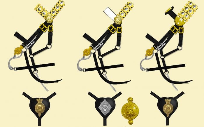 Pro všechny tři pluky bylo jednotného typu, z černé kůže a s mosaznou garniturou.
