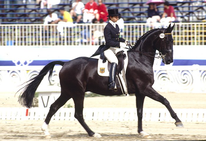Tahle fotografie byla pořízena na bundesšampionátu v roce 2005, kde Georg a jeho dcera Monica, která v současnosti působí jako trenérka německé reprezentace, předváděli mladého Grand Prix koně Whispera.