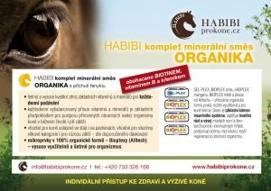 Escobar nesnese krmiva jako müsli, pelety apod. Proto ke krmné dávce mačkaného ovsa, vařeného lněného semínka a HABIBI TRÁVENÍ PLUS přidáváme ještě doplněk zajišťující denní potřebu vitamínů a minerálů HABIBI ORGANIKA s mikroprvky včetně selenu v organické, dobře využitelné a pro koně šetrné formě. Organikou udržujeme imunitu všech našich koní.