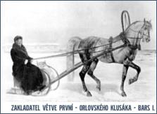 a.) Orlovský klusák vznikl na podkladě arabské krve a byl založen v 18. století hrabětem Orlovém Česmenským, jmenovitě zootechnikem Šiškinem v Chre-novoji ve Voroněžské gubernii. Základem byl z pouště dovezený arabský hřebec Smetanka, připuštěný na dánskou klisnu. Z tohoto spojení se narodil syn Polkan a ten s holandskou klisnou dal v r. 1784 hřebce Bars I, pokládaného za vlastního zakladatele této větve. Bars měl v chovu mimořádné výsledky a z jeho potomstva bylo k další plemenitbě vybráno 11 synů, z nichž Ljubezný, Dobrý a Lebed dali vznik slávě "orlováků". Nejúspěšnější Lebed se proslavil v chovu a dal 14 synů a 187 dcer. Orlovský klusák byl prohlášen za ruského národního koně a jeho sláva je celosvětová.